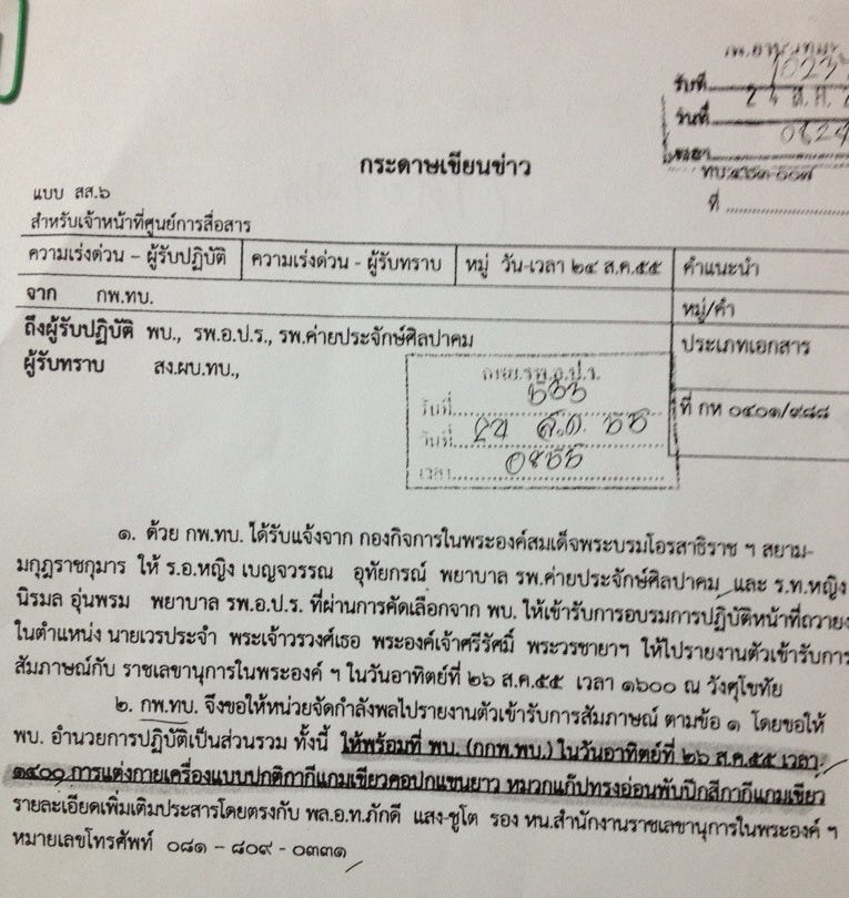 In 2012, Koi was transferred to the palace as a lady-in-waiting for Srirasmi, as this leaked document from August 2012 confirms.