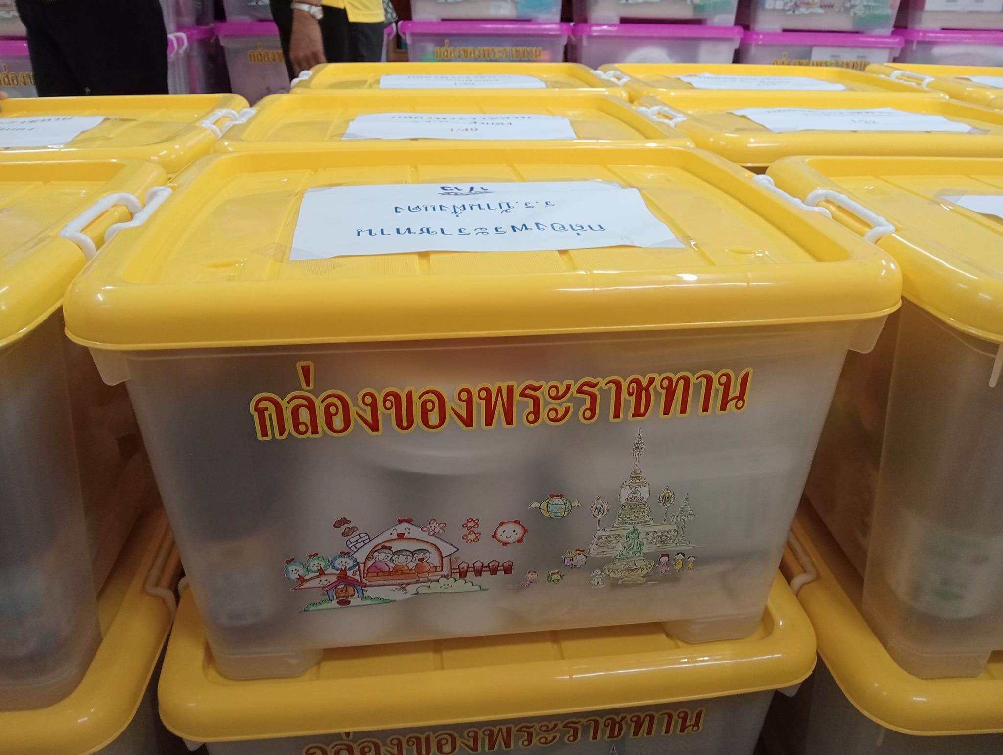 Over the past month, in an unexpected palace initiative, Royal Guard soldiers and Chit Arsa volunteers have been distributing so-called royal gift boxes in various parts of Roi Et province. The boxes are decorated with more of Vajiralongkorn’s doodles. Some have yellow lids, some pink.