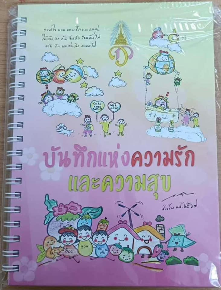 Inside each box are various items including a spiral-bound diary, also decorated with the king’s artwork, and entitled “Record of Love and Happiness”.