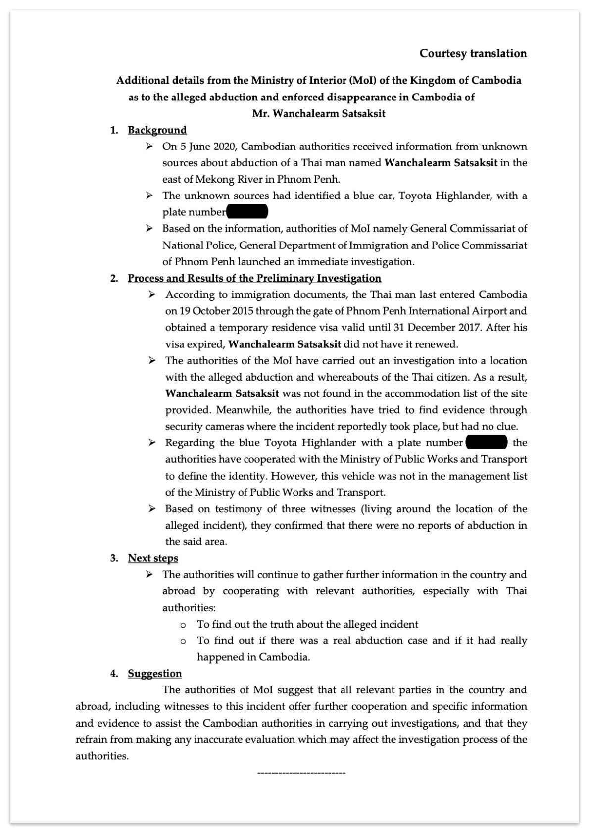 The authorities in Cambodia have never even bothered to pretend to investigate the incident. They continue to absurdly claim that they have not found any evidence a crime has been committed or that Wanchalearm was even in Cambodia.
