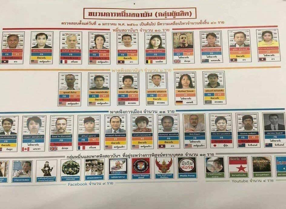 The Thai regime has been doing its best to monitor foreign-based critics for years, as a document leaked to me in 2017 shows. Wanchalearm is on the lower left of the document, and I am one of those on the top row.