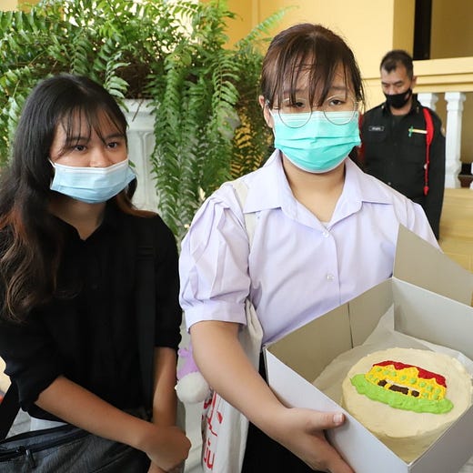 It’s not clear if this was genuine incompetence or if the regime is wary of jailing too many more people too soon, but there seems little prospect any of the 13 will be granted bail in May. The October 26 rally was among the most audacious of 2020 with tens of thousands of protesters marching to the German embassy where activists read out statements calling on the government in Berlin to investigate an explosive list of issues — whether the king was breaking German law by exercising Thai sovereignty from there, whether he had evaded German tax, whether he had trafficked a harem of Thai women to Germany, and whether he had been involved in violence against palace servants in Germany and exiled dissidents in Southeast Asia. These were accusations that had never been mentioned publicly in Thailand before, so bold that most international media didn’t even dare to report them. Given the embarrassment they caused to the king, the 13 activists facing charges know they can’t expect any mercy from the court, especially as judges have been ordered by the palace to routinely oppose bail.
